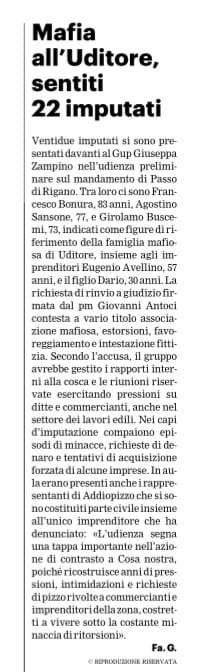 Giornale di Sicilia – Mafia all’Uditore, sentiti 22 imputati